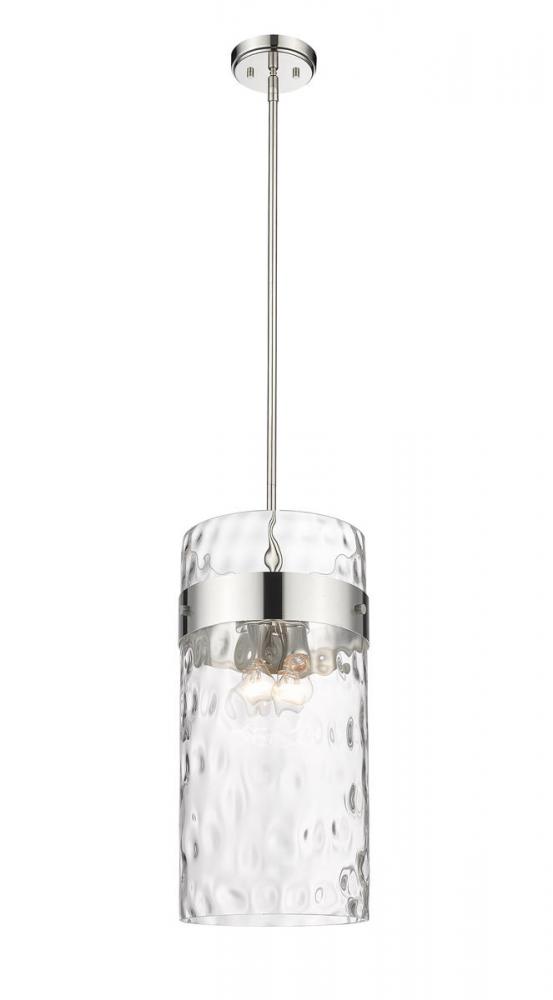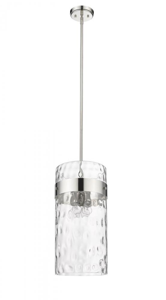 Suspend an alluring four-light pendant fixture from your kitchen ceiling for an aesthetic display. Featuring a cylinder glass shade with a lovely ripple texture, this piece is crafted from steel with a polished nickel finish.