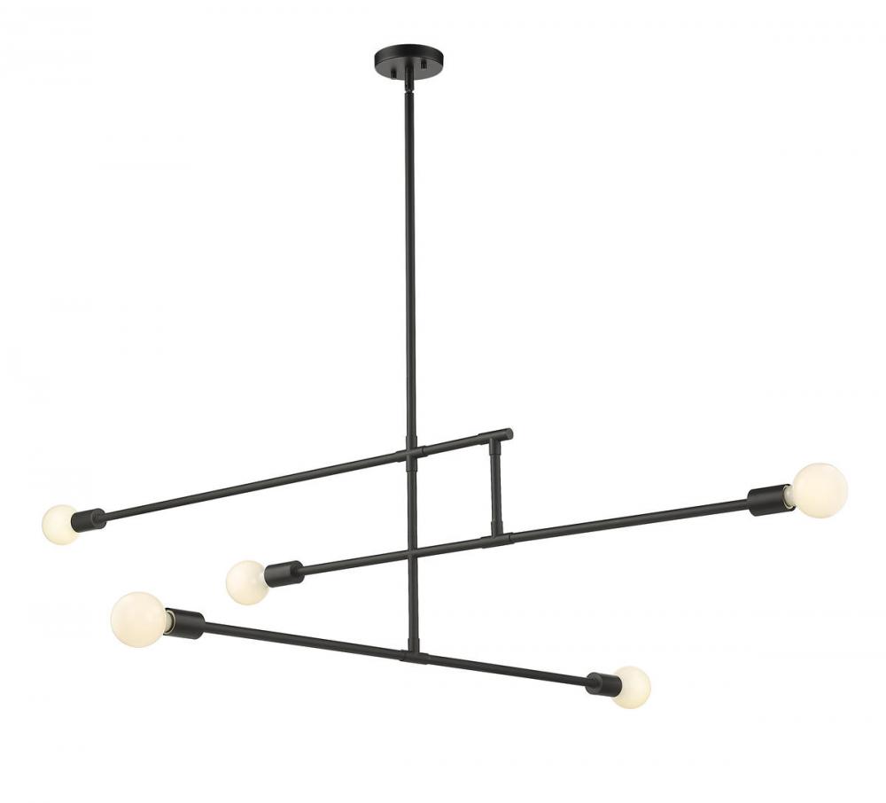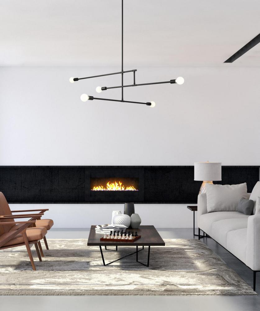 Bold linear styling adds surprising character to contemporary spaces, forming a linear shape that makes this five-light chandelier from the Modernist collection stand out as an uplifting accent with a hint of industrial flavor. Bring fresh lighting and elegant aesthetics to a modern dining or living space with this chandelier crafted of matte black finish steel construction. Stark geometric parallel and perpendicular silhouetting turns low-key, simple visuals into an eye-catching addition to primary d?cor.