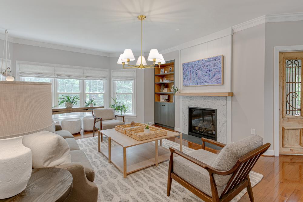 Modern flexibility of design plays up the chic, understated character of a five-light chandelier. Expertly designed with simplicity at the forefront, the chandelier pairs a rich luxe gold frame with straight suspension and complementary angularity, all capped with conical shades that create the perfect hint of dimensionality for a fixture that looks great everywhere from the dining room to a bedroom dressing area.
