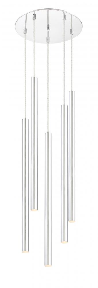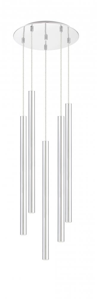 Express radiant modern style with the bright chrome finish on this five-light pendant light. Inspired by a windchime, the silhouette is full of sleek and clean lines.