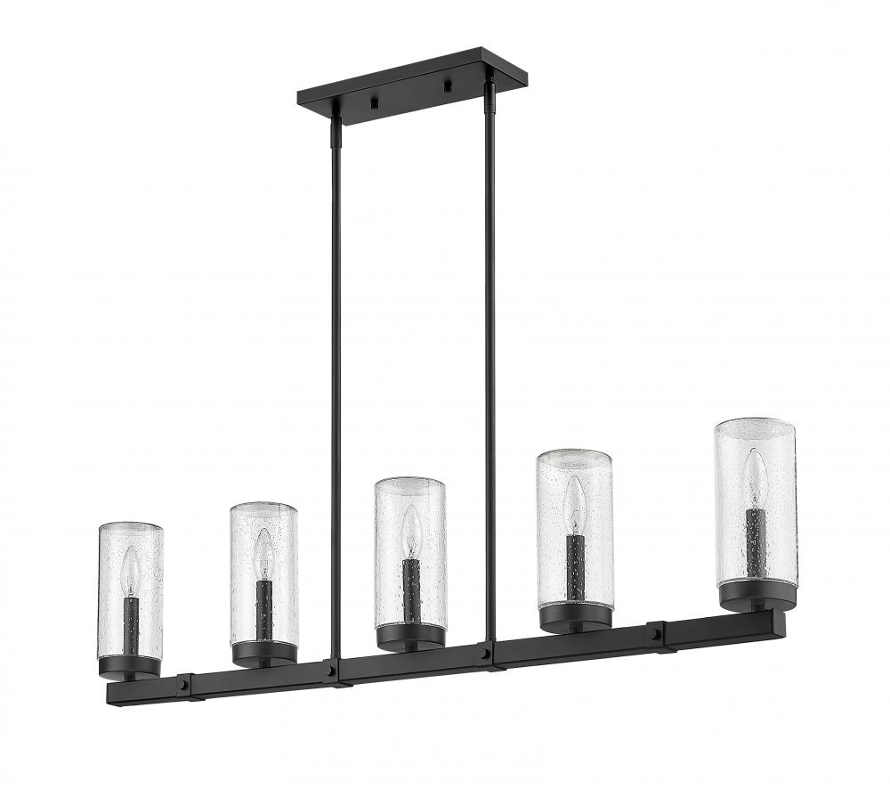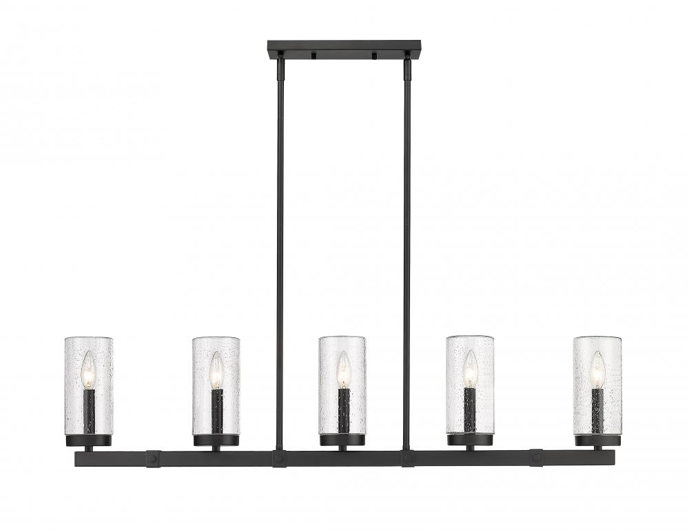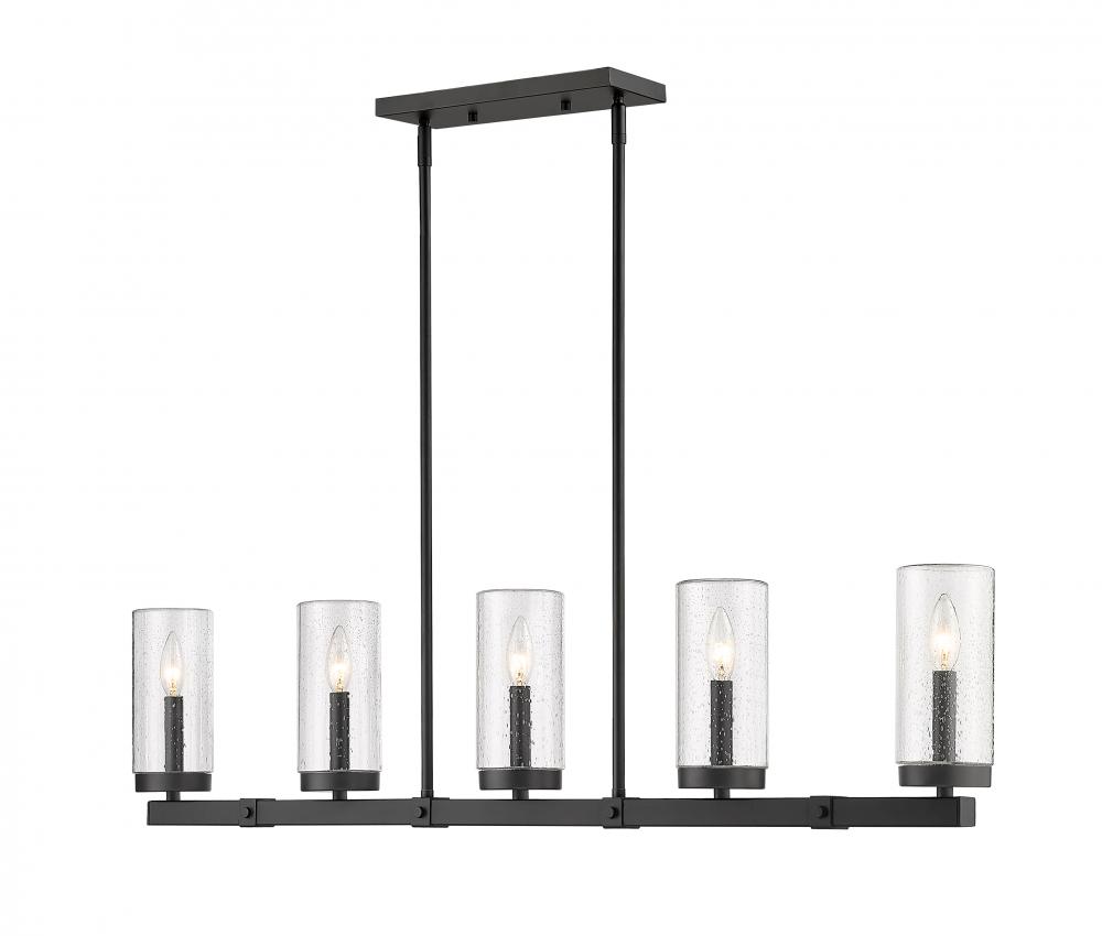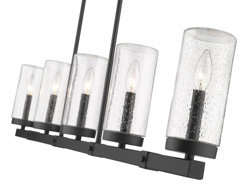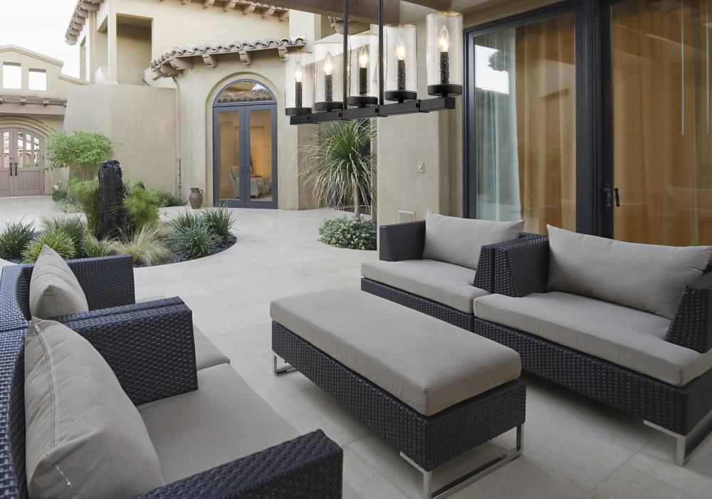 Exterior or interior, fashionable light fixtures add a welcomed dose of aesthetical updates and ambient lighting, both delivered in style by the Marlow five-light outdoor linear fixture. Sophisticated minimalism reflects in a fixture featuring a steel frame with an ashen barnboard finish with matching accents. Cylinder shades fashioned of romantic seedy glass dress up its romantic attitude, offering a filtered view of candelabra-style bulbs.