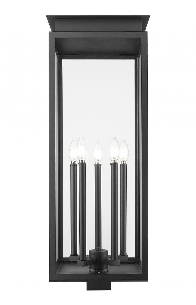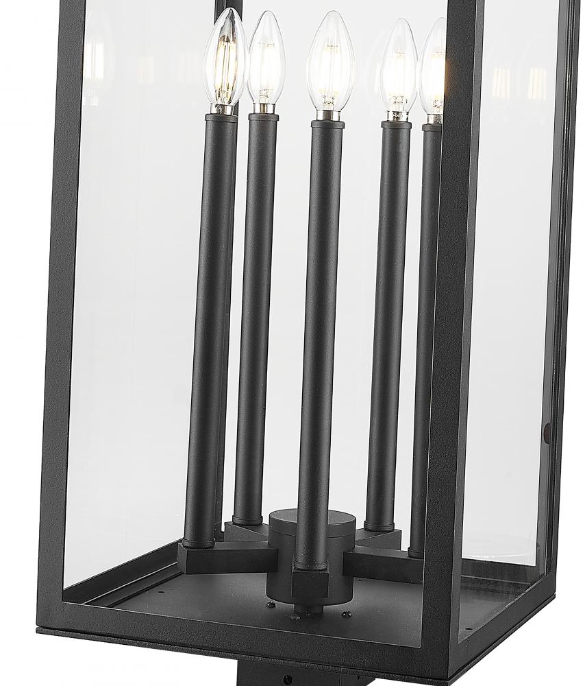 Deliver bright illumination and timeless elegance with this transitional five-light outdoor post mount light. It boasts a durable coastal black finish over aluminum constriction with glass panels. Its candelabra lights are a classic choice, perfect for inviting ambiance and curb appeal.