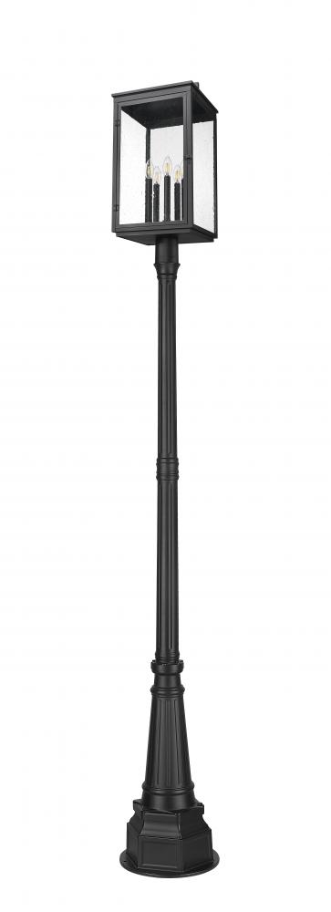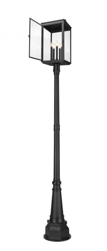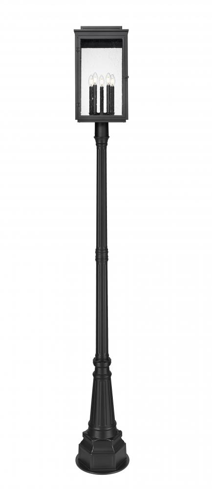 Enjoy the decorative post supporting this traditional Mission five-light outdoor post mount fixture. Ideal for a front walk or garden path, it offers ample curb appeal with clear seedy glass and a textured sand black finish thats marine-rated for excellent durability. Its candelabra cluster of lights radiates inviting ambiance, perfect for enjoying your exterior spaces.