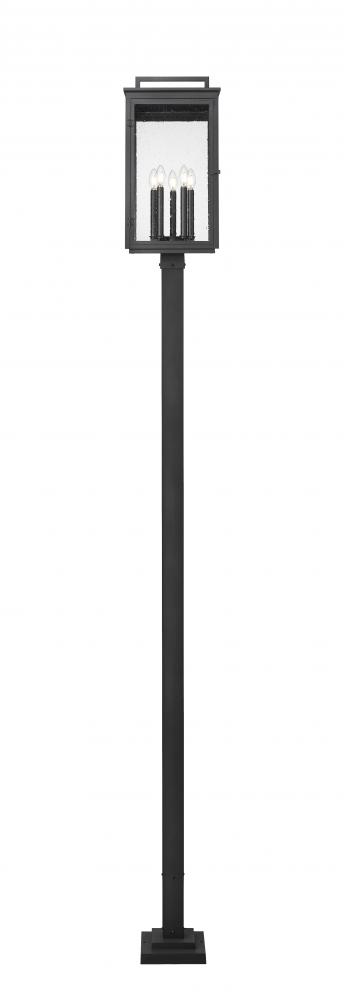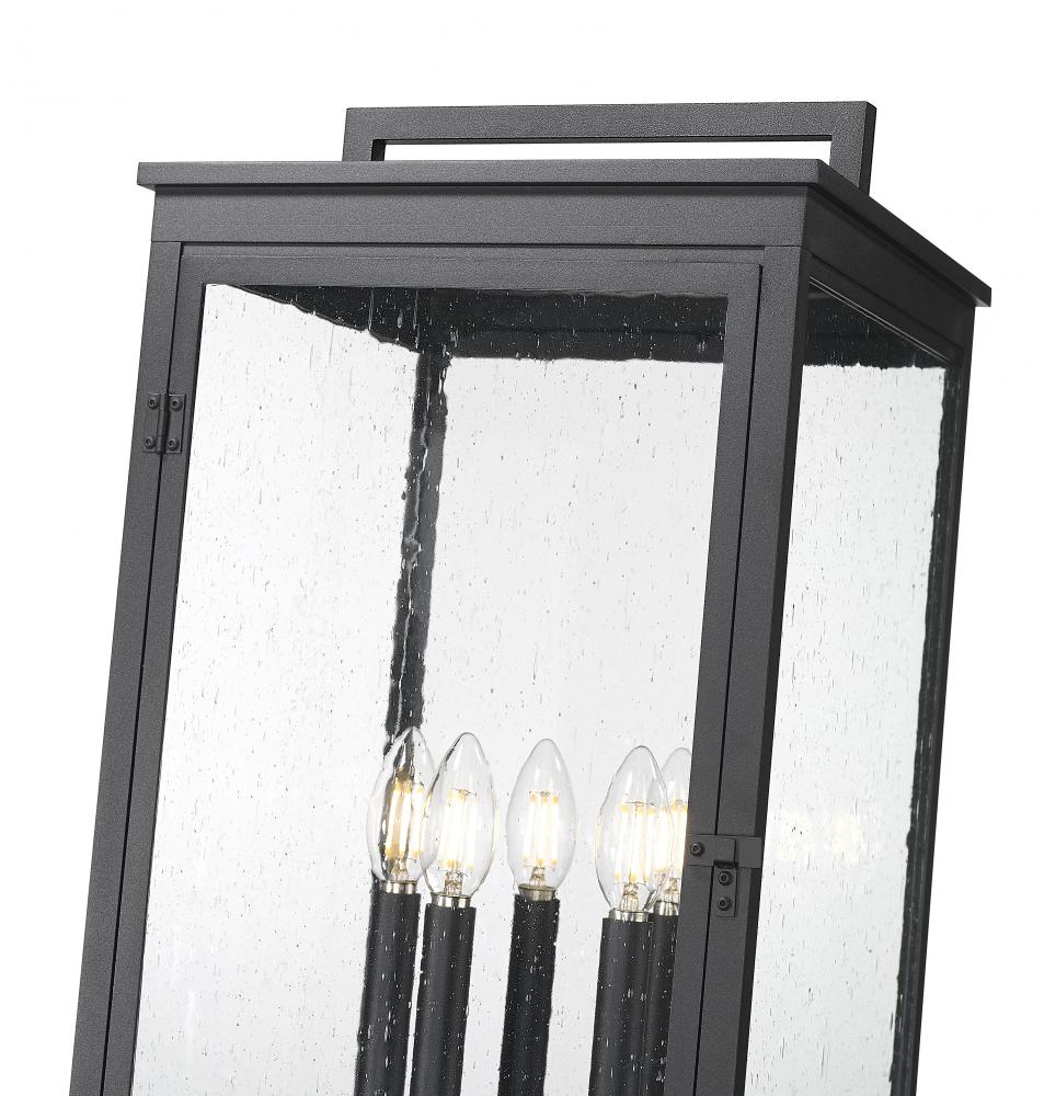 Set the tone with the simple post and charming handled crown featured on this traditional Mission five-light outdoor post mount fixture. Its clean-lined form is crafted in aluminum and received a marine-grade sand black finish for added texture and dimensionality. Clear seedy glass panes enclose the light cluster, adding a perfect hint of dimension and character.