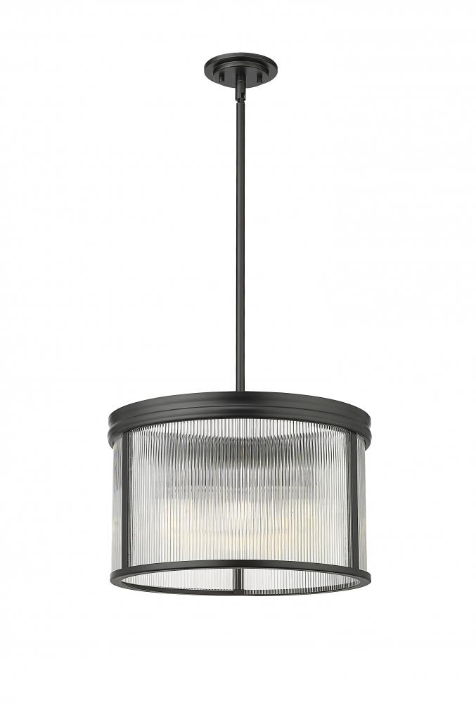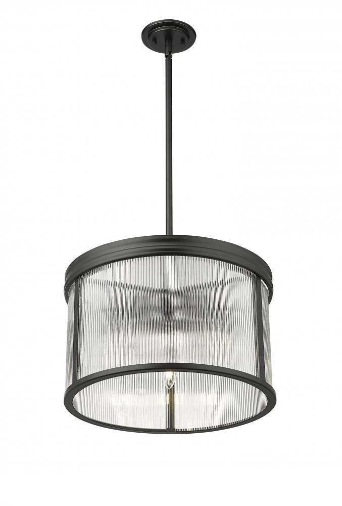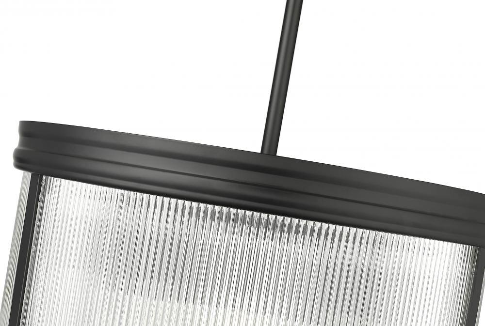 Architectural design motifs translate beautifully in a modern five-light pendant that showcases gorgeous ribbed glass to create a hint of opacity and refraction of light from within. Its round profile is timeless and elegant over any living space, while a matte black finish is crisp and structured to offer distinctive definition.