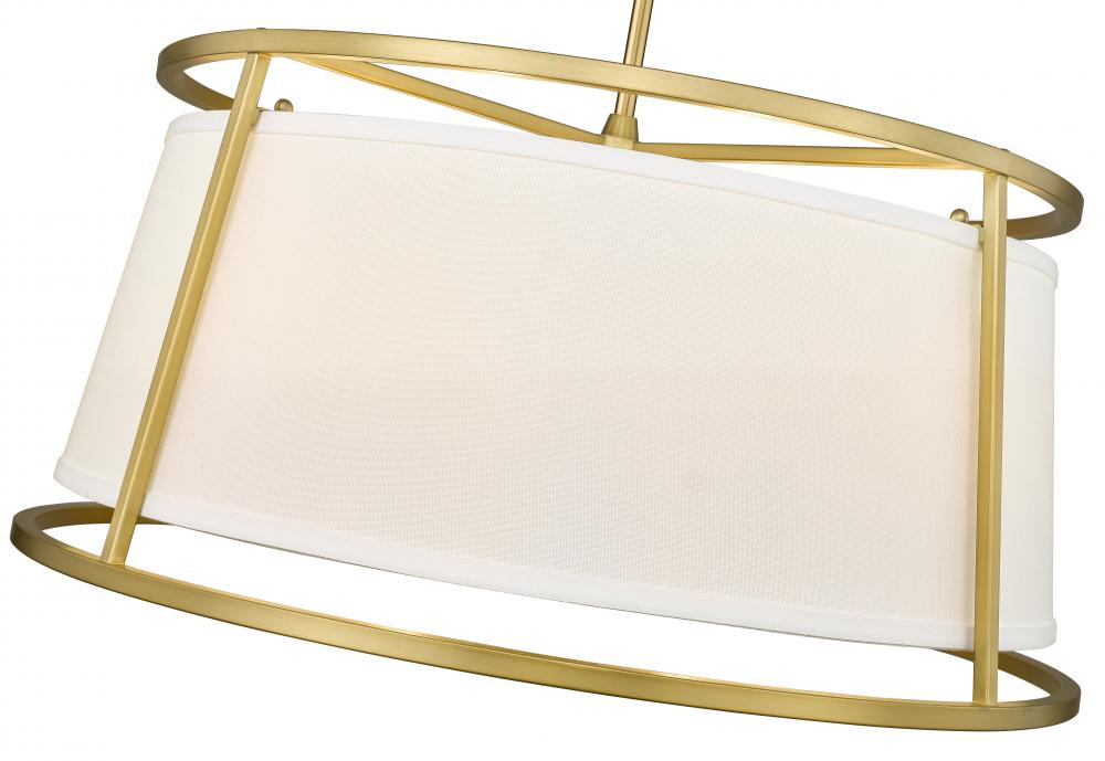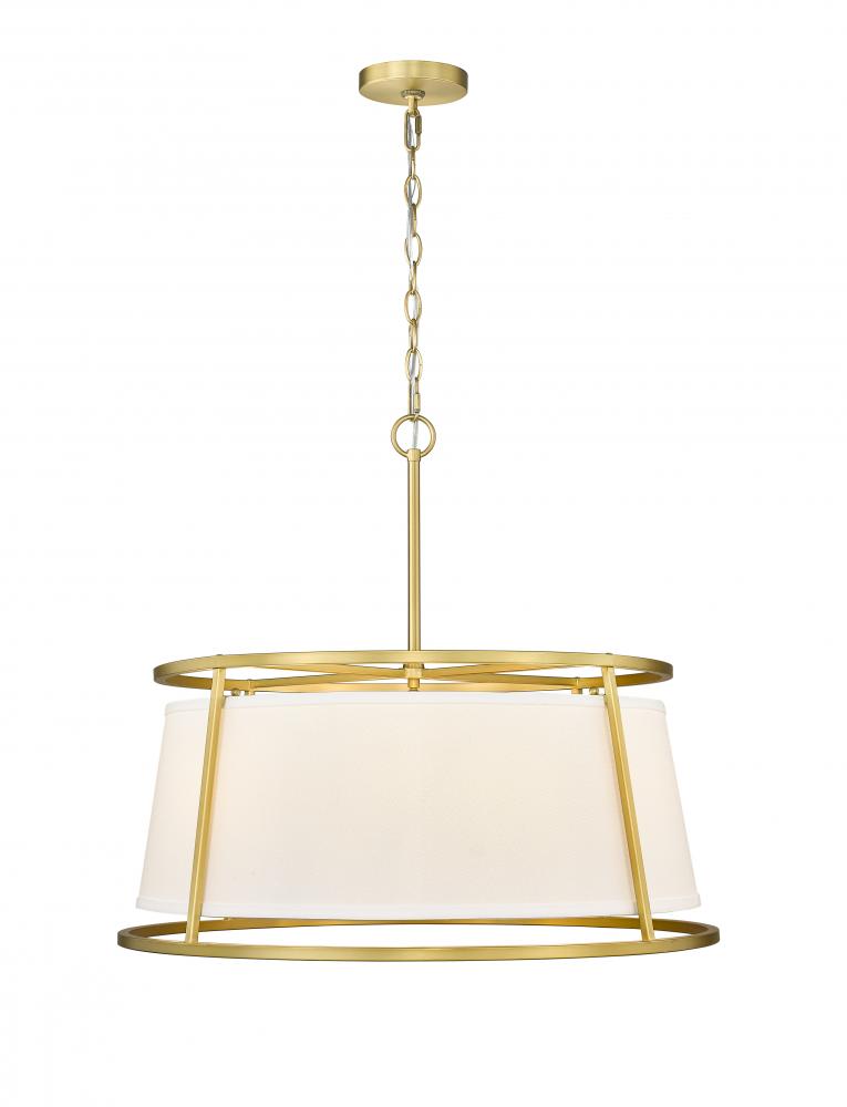 Light and elegant style blend to create a motif with impressive ambiance perfect for a modern living room, dining space, or entryway. Embrace the Lenyx six-light pendant and its rubbed brass finish openwork steel frame offering full view of a classic white linen shade that keeps to a more conventional look with familiarity.