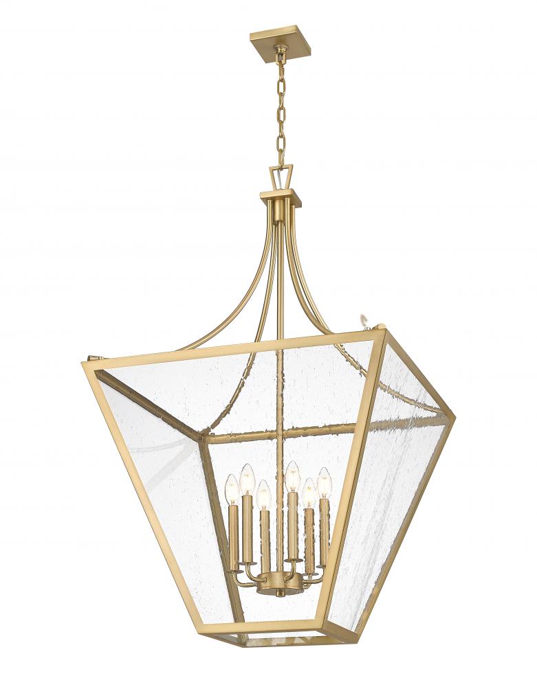 With a festive look and lush rubbed bronze steel construction, this lantern-inspired six-light chandelier becomes a go-to option for illuminating dining spaces, living rooms, and foyers. Its unconventional silhouette is a bonus, as are romantic candelabra-style bulb mounts behind slightly seedy glass panels. Choose variable lighting levels with this fixtures convenient dimming feature.
