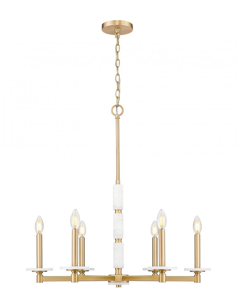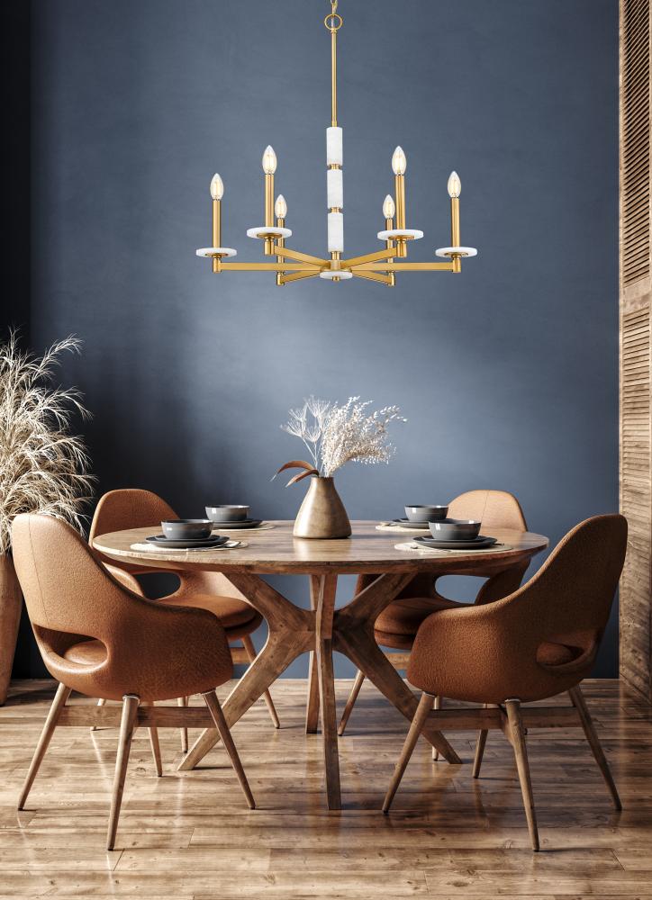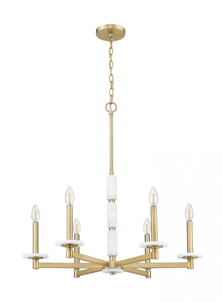 There?s a softness in this design that feels timeless yet fresh. The gentle gleam of modern gold finish supports six alabaster orbs, each glowing with natural brilliance. Perfect for gathering spaces, it creates a golden halo that turns light into atmosphere.