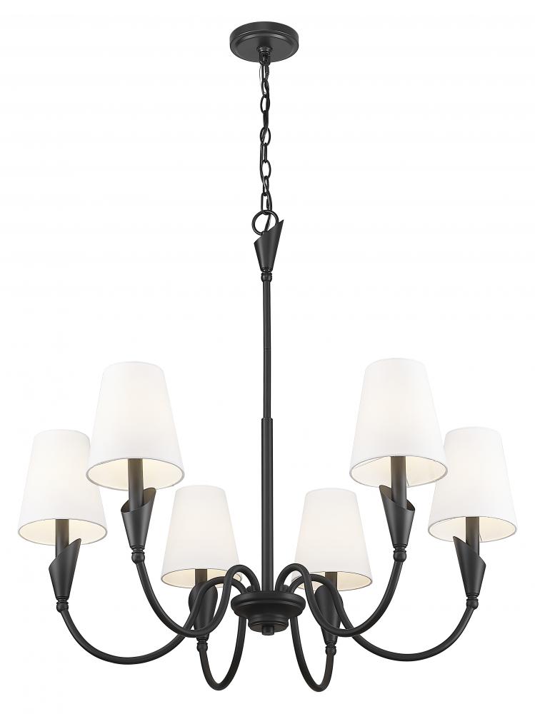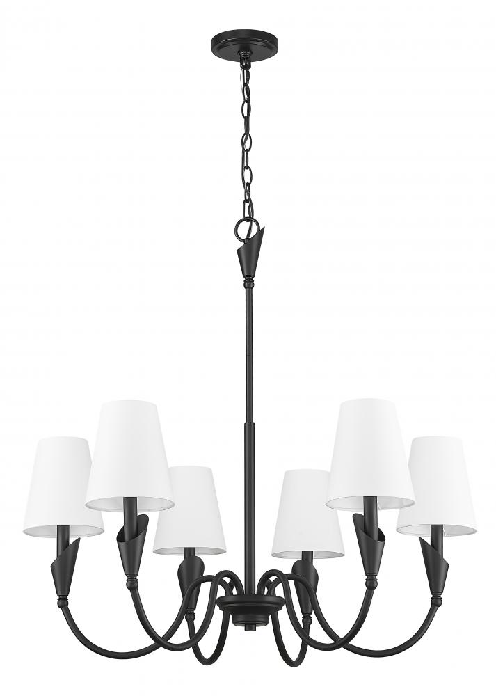 With six gently arched arms and a sleek matte black finish, this chandelier channels the quiet beauty of floral form. Each white linen shade floats like a petal in bloom, creating a warm, welcoming atmosphere overhead. It?s a striking yet subtle piece designed to soften modern spaces and elevate the everyday.
