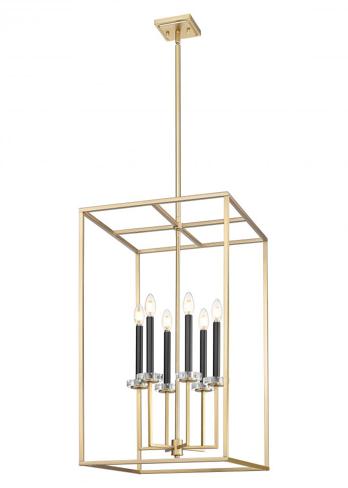 A multi-motif design adds versatility for illumination of sophisticated living spaces as this six-light chandelier emulates a version of open metalwork cage styling. Warm modern gold finish steel construction embraces a geometric silhouette, with internal candelabra holders and dimmable lighting ideal for setting moods and adjusting to time-of-day needs.