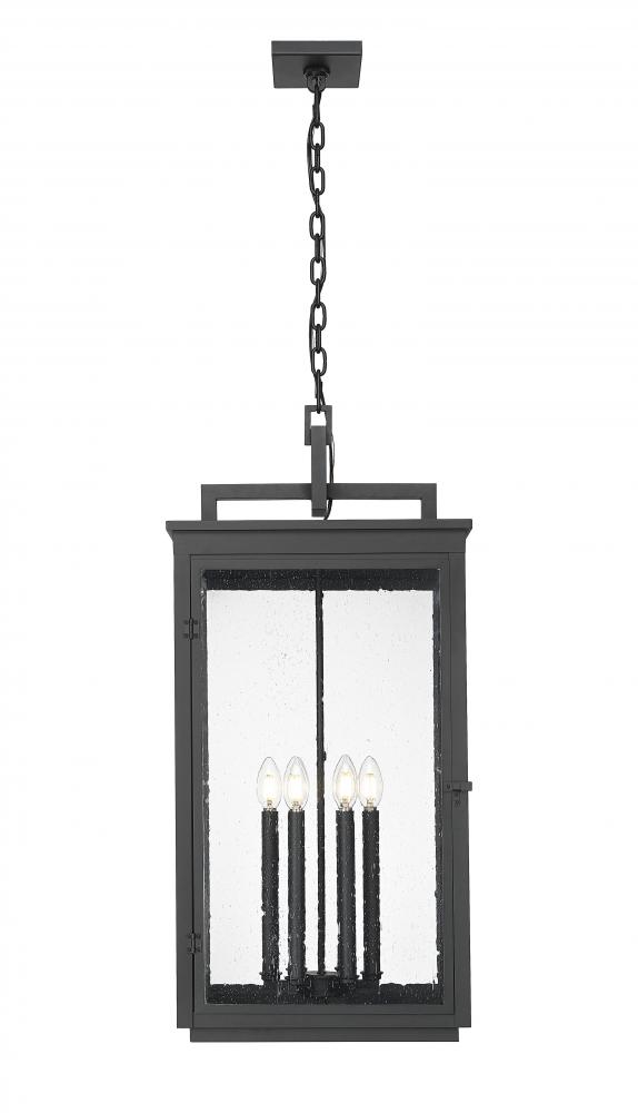 This oversized beauty in sand black floats from its chain with bold, architectural presence. Six candelabra lights glow behind clear seedy glass, radiating warmth and romance in every direction. The crown top and classic handle nod to heritage design without feeling heavy. It brings the glow of tradition into today?s outdoor living.