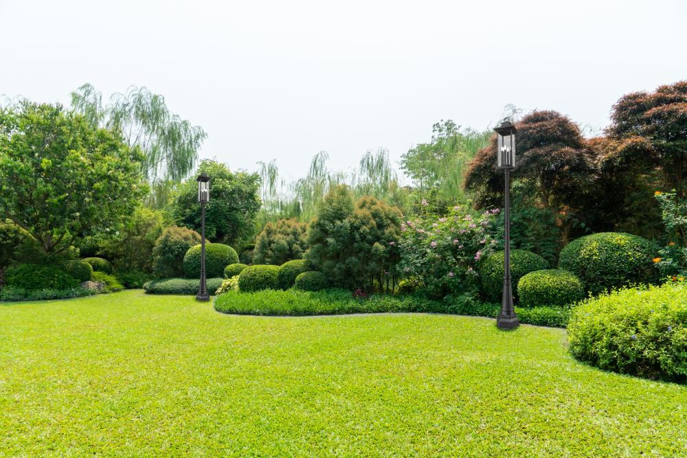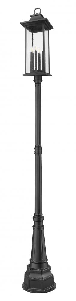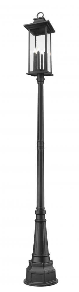 Brighten walkways and gardens with this transitional six-light outdoor post mount light. It features a lantern silhouette complete with a coastal black finish over aluminum, designed specifically to stand up to the elements. Clear seedy glass allows bright light while a flared cap and ring finial complete this engaging look.