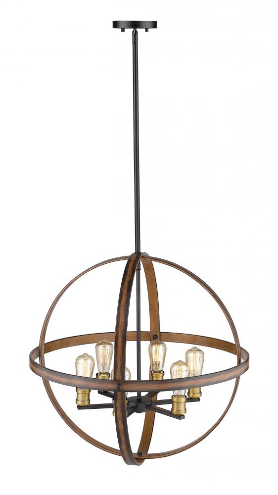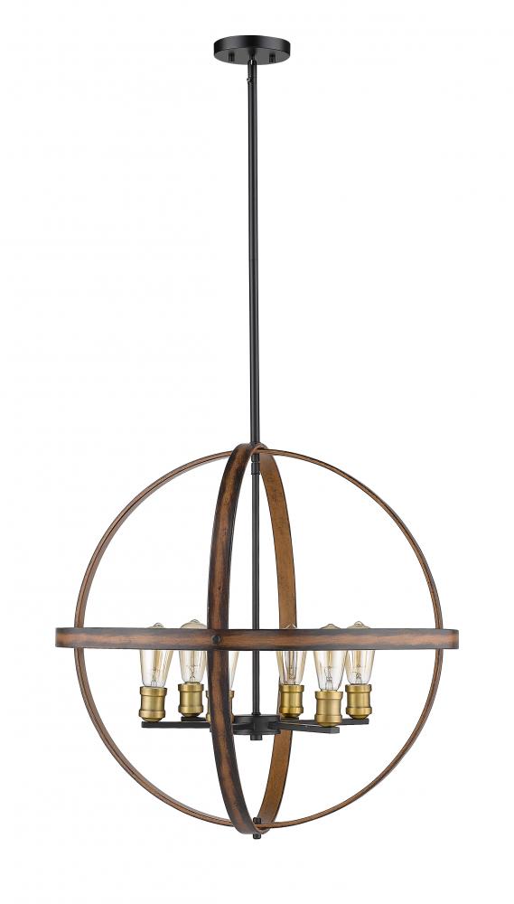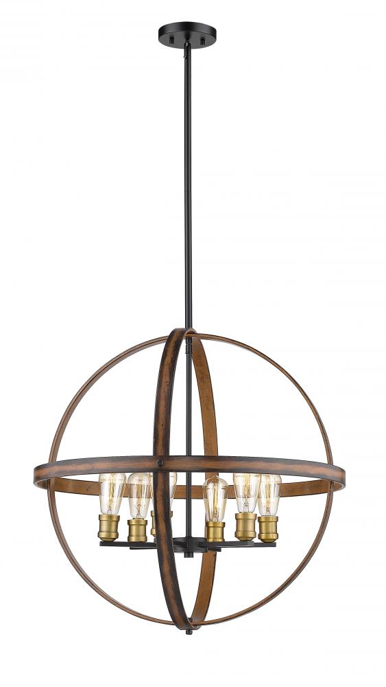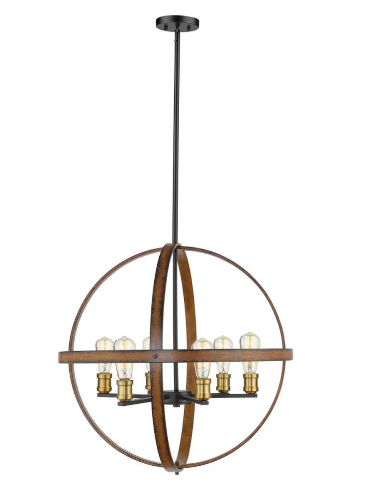 Create a stunning centerpiece over a bountiful dinner table with this stylish six-light pendant light. Rings of faux barnwood marry in a rustic mahogany finish, elevated with industrial-inspired exposed lightbulbs.