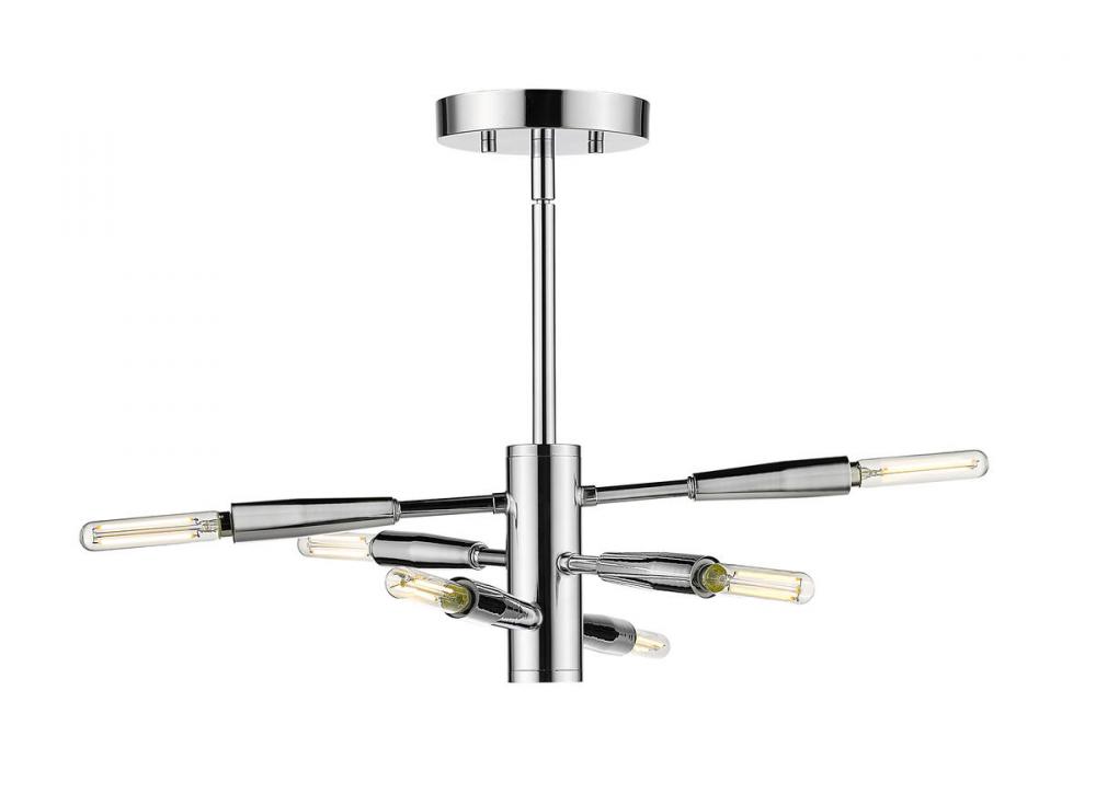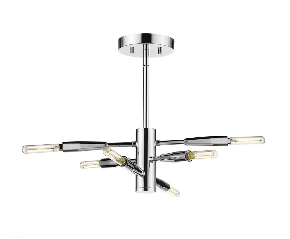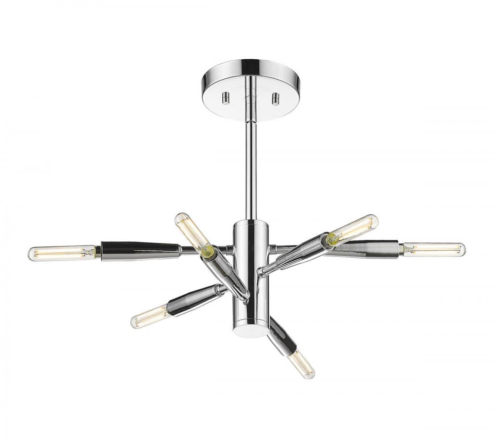 Step into a futuristic vibe as you choose illumination for your modern living spaces. This six-light semi-flushmount ceiling light from the Ascension collection delivers a sleek modular look with baton-style arms that rotate to a customized position. Made of brilliant chrome finish steel, this inspiring fixture may be further personalized with the custom optional bulbs of your choosing.