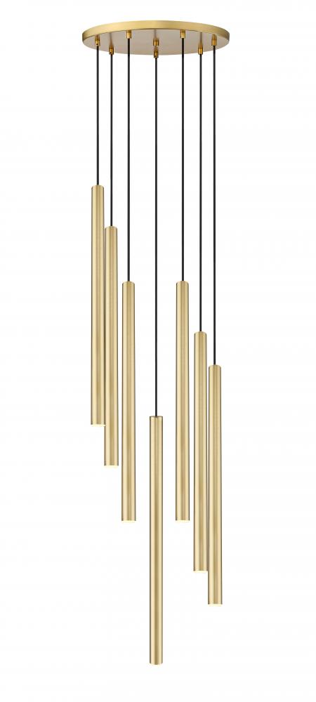 Dimmable LED lights bring versatility and a wonderful ambiance to this modern seven-light chandelier. Its an energy efficient choice that offers dimmable lighting, perfect over an entry, dining table, or staircase. Modern gold finishing adds richness and warmth, sure to stand out in your contemporary decor.