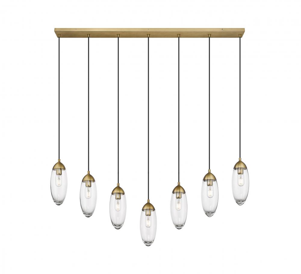 Customize a modern interior design scheme lighting suited to sleek elegance. A careful arrangement of delicate glass teardrop shades forms a minimalist silhouette with maximal impact as this seven-light chandelier becomes an expression of sophistication in a contemporary setting. Placed over an island, dining ensemble, or living area, this fixture with a cool brushed nickel finish metal canopy offers a sought-after mix of organic and gallery-inspired flavor.