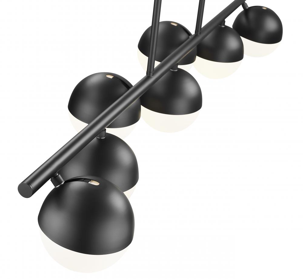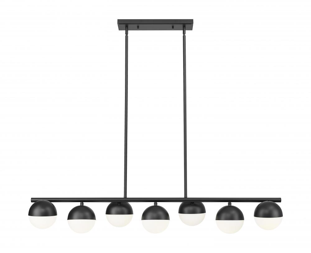 Set a sleek tone in your contemporary kitchen or dining room with this modern seven-light linear chandelier. In matte black, it creates bold contrast in any setting, while matte opal glass orb shades create inviting illumination. The alternating configuration of lights adds dimension and personality, perfect for a custom ambiance.