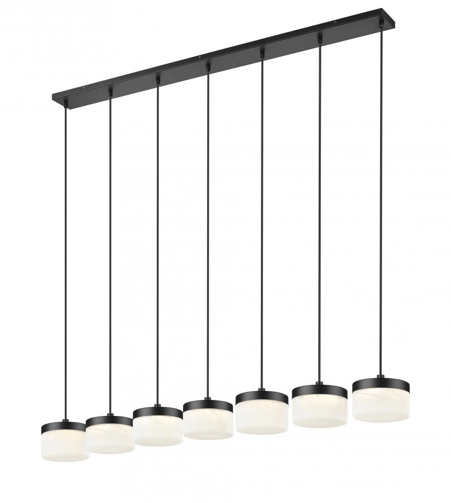 Stretched in a long, balanced line, this matte black 7-light linear LED chandelier spaces its clouded shades evenly so light reaches every seat along an extended island or table. The design feels substantial, while the slim cords and frosted glass keep the look airy and deliver strong illumination for cooking, working, and gathering. In open-concept layouts, it serves as a visual divider that gently defines the dining or prep zone while still allowing the rest of the space to flow around it.