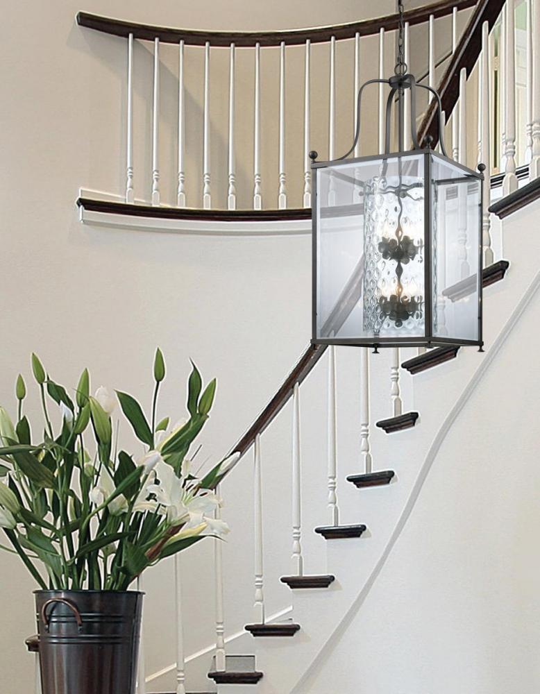 For those looking for a modern look without sacrificing the warmth of the light need to look no further than this fixture. The combination of clear beveled glass on the outside and clear hammered glass on the inside allow for the bronze geometric shape to create a very modern look, while still emanating the warm glow found in traditional fixtures. This truly is the best of both worlds.