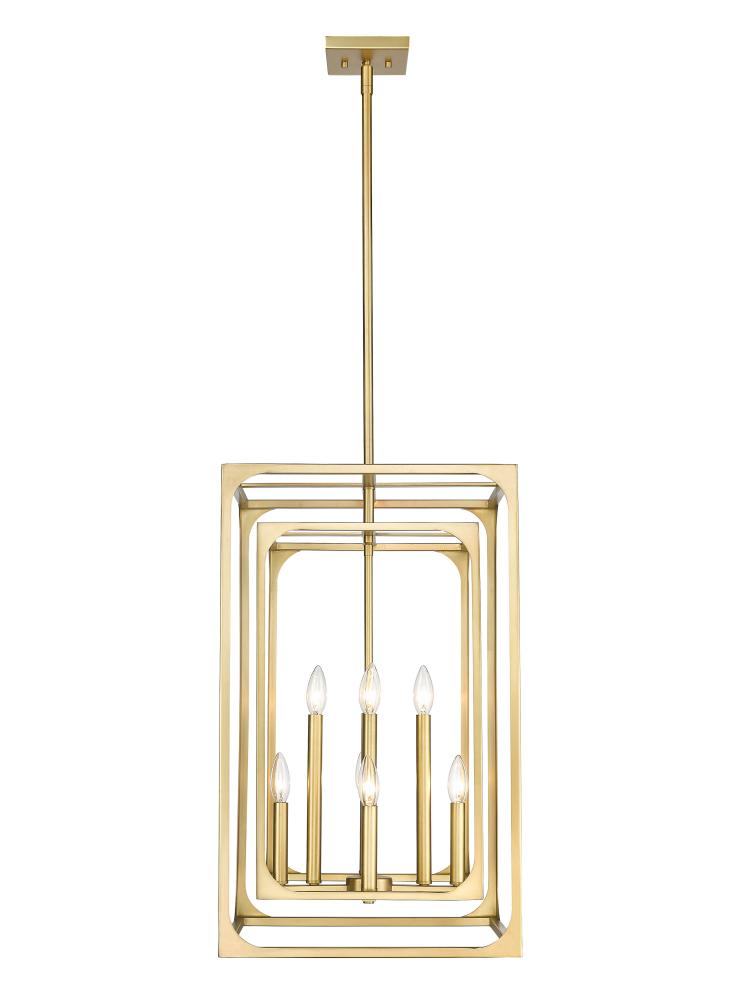 Gleaming brass finish metal elevates a glam look in a fixture with a striking aesthetic perfect for modern and transitional spaces. The Easton metal eight-light chandelier creates a mixed motif with candelabra bulb mounts set in a graduated arrangement, centered in full view thanks to a dual-layered openwork rubbed brass finish steel frame. A chic version of minimalism delivers a sought-after effect, accomplishing its objective.