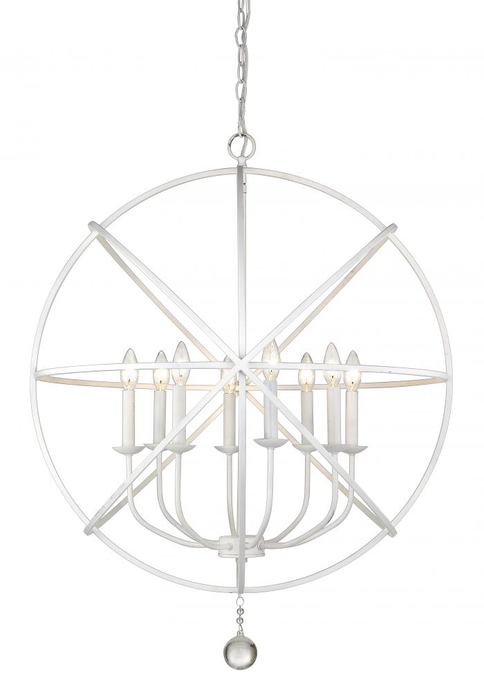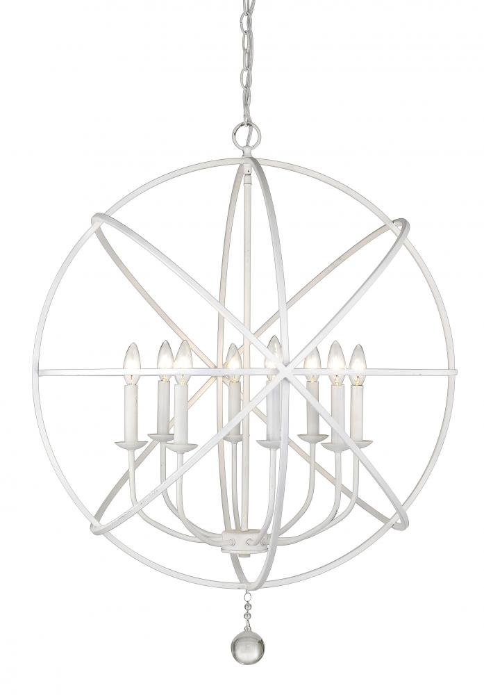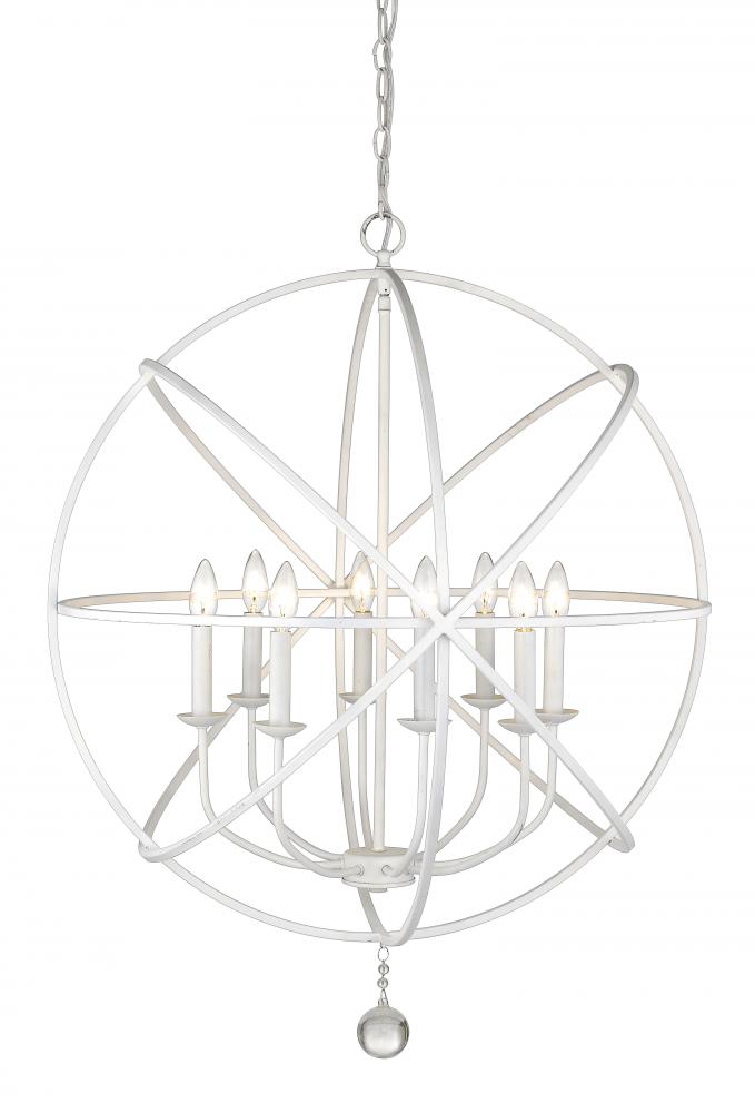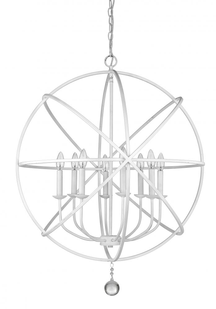 Bring stunning design and fresh personality to a dining or living space with this matte white open-orb eight-light chandelier. Blending style motifs, its space-inspired steel frame delivers an artful ambiance, and customizable finishes over its frame interior, finials, and candelabra-style bulb bases offer coveted flexibility for a tailored room decor.