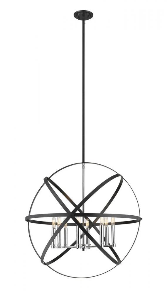 Add a dynamic touch to a dining or living space with this intriguing hammered black and chrome finish eight-light pendant light. Enjoy a modern-inspired orb shape formed with flat iron ribbons, and a romantic collection of candelabra-style bulbs hosted in a chrome finish bulb base.