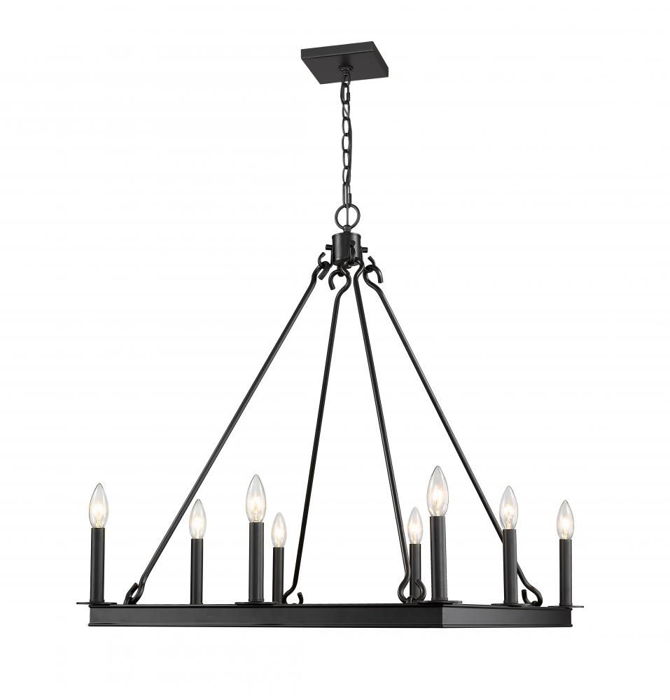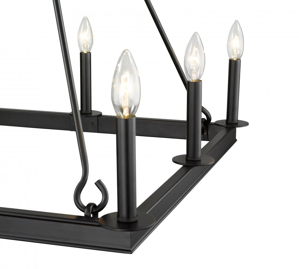 Enjoy the stylish design and tones of this eight-light chandelier for your home. Its fashioned in a handsome matte black finish with the candle-inspired lights in a large bold square design. Itll instantly energize the ambiance in your dining room, foyer, or kitchen.