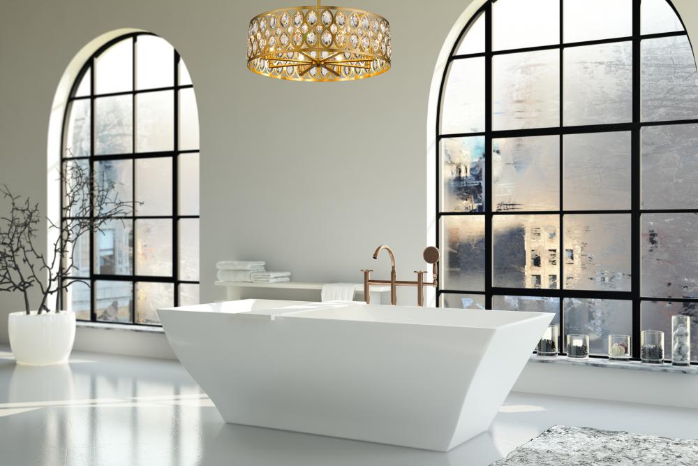 From the Dealey collection comes this elegant and wide eight-light chandelier. Featuring a round steel shade in a warm heirloom brass finish, this lighting piece exhibits a punched ellipse-style pattern, set with shimmering clear crystal pendants. This alluring and charming, contemporary chandelier lends a sophisticated flair to a dining room or living room.