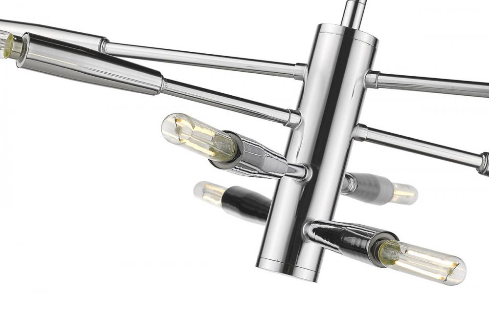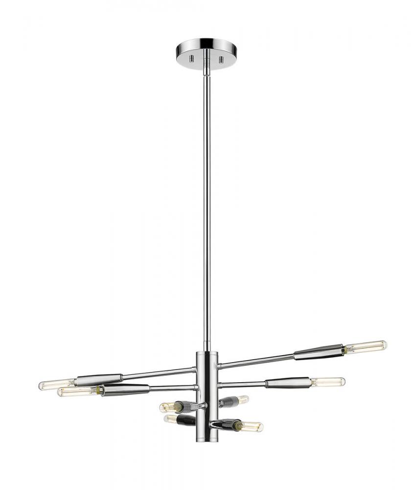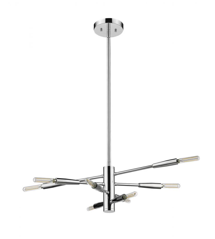 The modernistic aesthetic of space sneaks in to add a dynamic vibe to this chic eight-light chandelier from the Ascension collection. Make any space a central focus with a fixture crafted of brilliant chrome finish steel and dressed up with slender baton-style arms that may be rotated to achieve a customized look. This chandelier is a superb addition to both casual and semi-formal contemporary spaces.