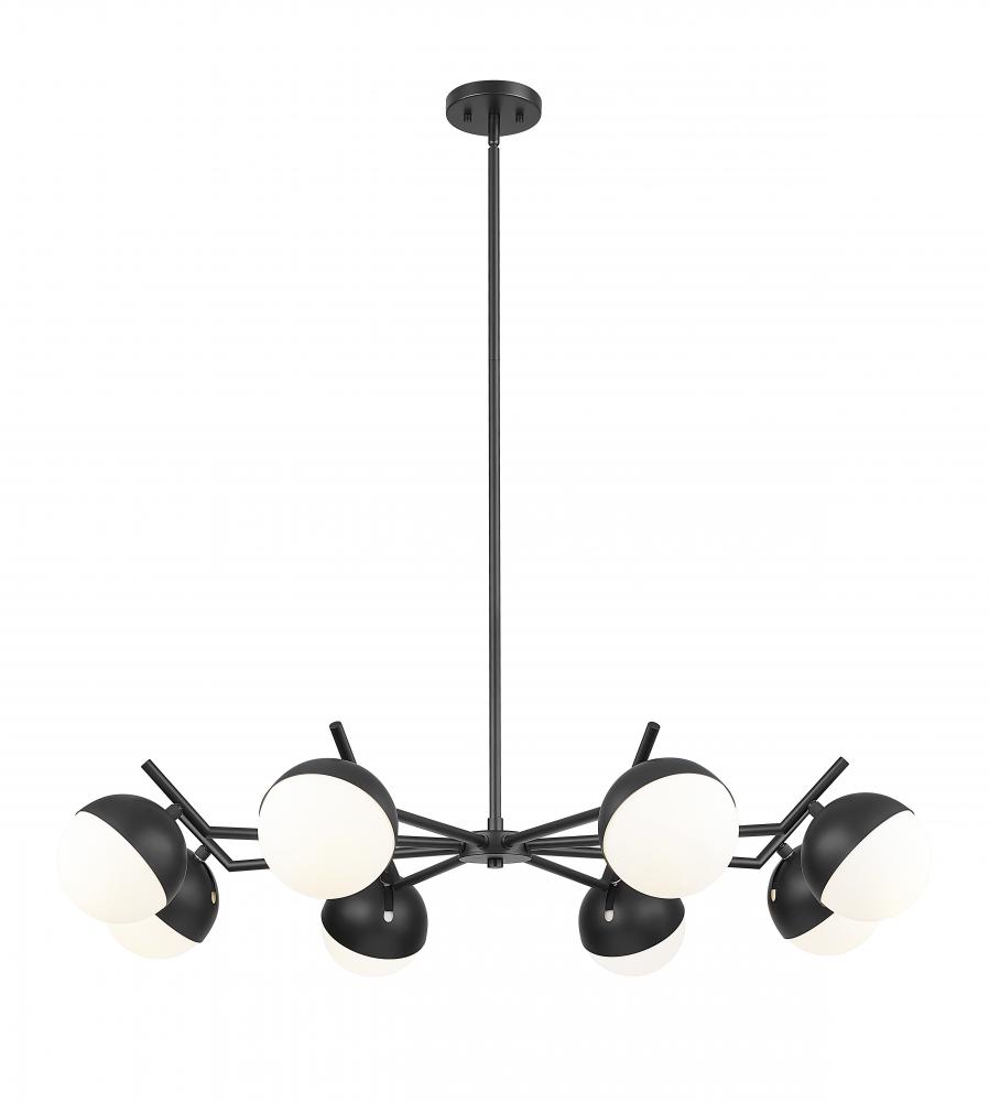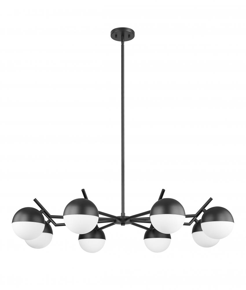 Matte black maximizes contrast and dimensionality for this modern eight-light chandelier. Its inspired design takes vintage details and makes them modern, from angular arms to orb shades that pair metal shields and matte opal glass. Its the perfect way to create an inviting ambiance for your chic dining room.