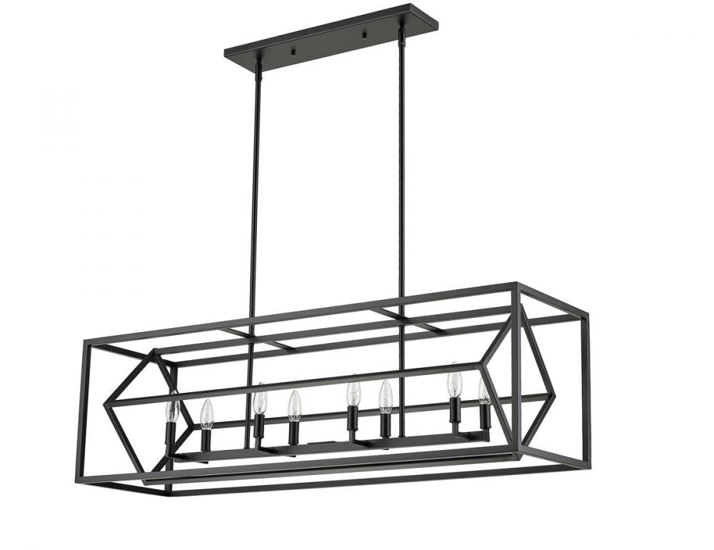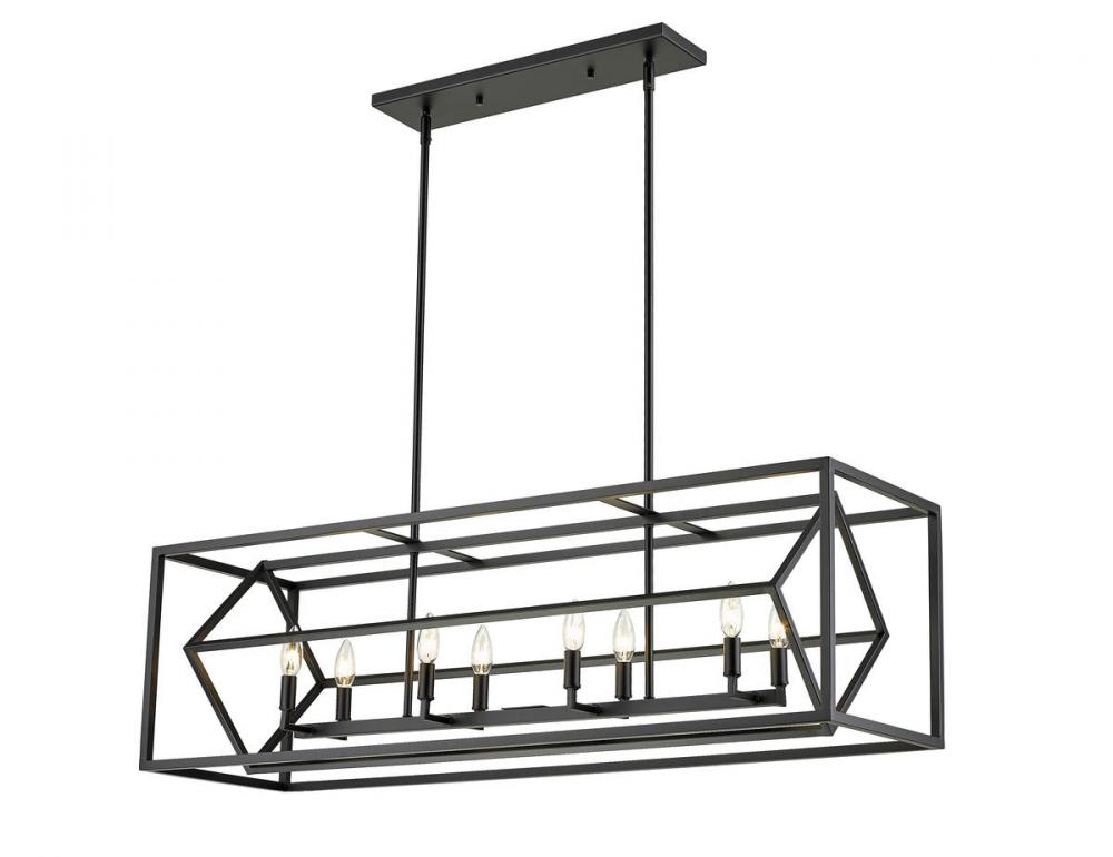 Clean lines and a geometric silhouette take this eight-light chandelier for a spin in the best way possible. Candelabra lights illuminate your space while the matte black finish offers an aesthetic appeal.