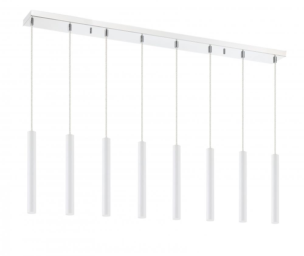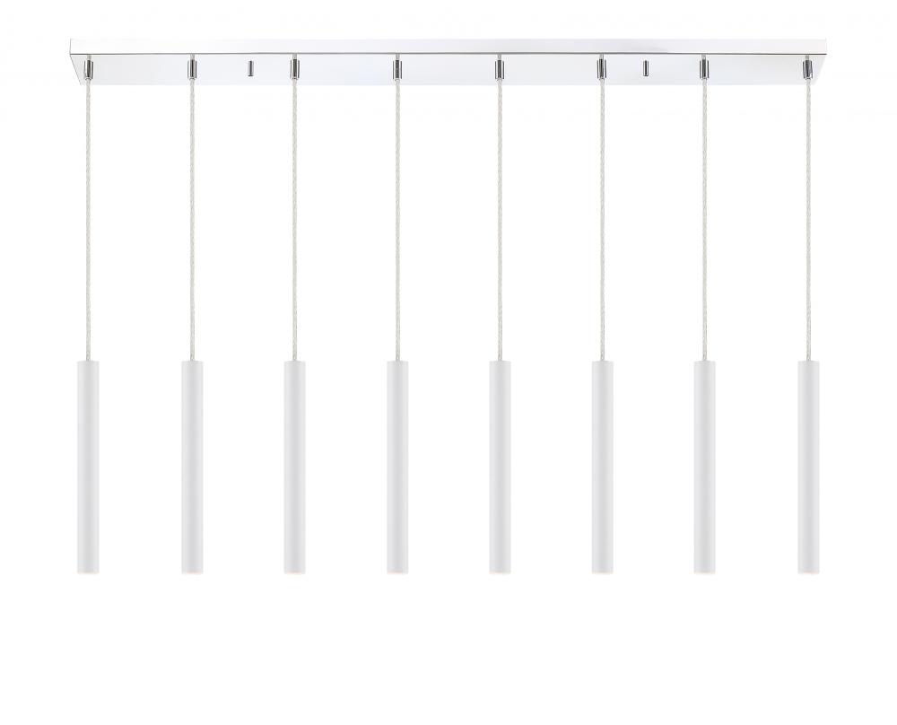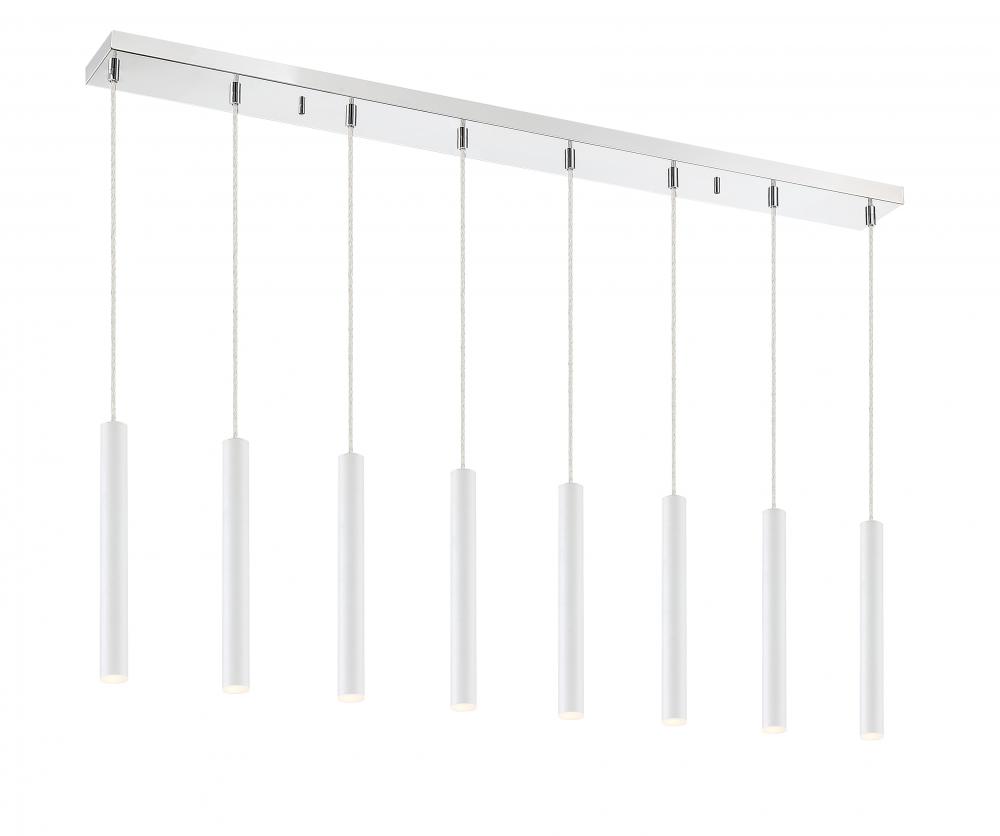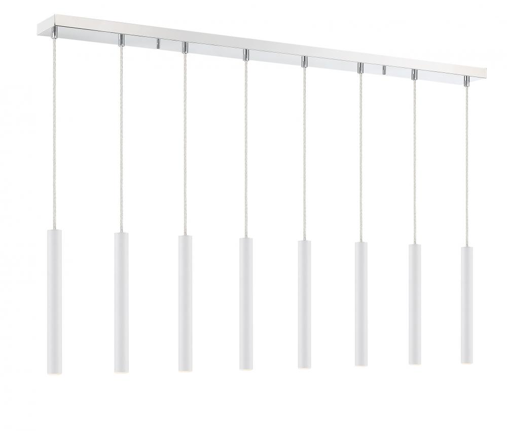 The perfect delicate centerpiece, this ten-light island pendant looks great in a kitchen. Crisp and clean, the matte white finish streamlines the elongated lines in the silhouette.