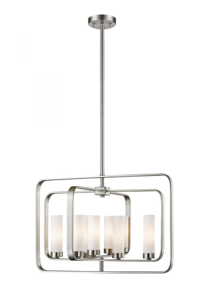 Sleek and contemporary, the Aideen collection incorporates rectangular and square shapes to achieve it?s cutting edge design. Matte opal shades are paired with a choice of three finishes which include Brushed Nickel, Chrome, and a modern Bronze and Gold combination.