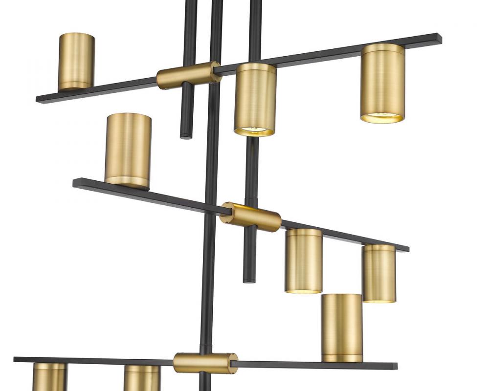 Embrace a rich heritage reflecting Native American tribes and their storied pipes, adding this nine-light chandelier from the Calumet collection to a high-visibility space. Modern and transitional join with industrial-inspired aesthetics to produce a linear pieced fixture crafted of matte black finish steel. Glowing cylinder shades fashioned of olde brass finish steel direct illumination in both up and down directions.