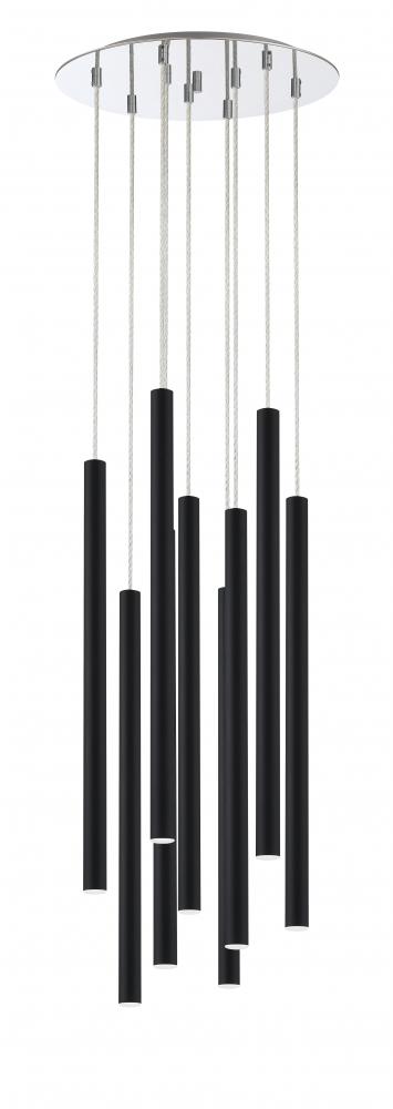 This eleven-light pendant light is sleek and stylish, with elongated modern details. The windchime-inspired silhouette features a sleek, matte black finish.