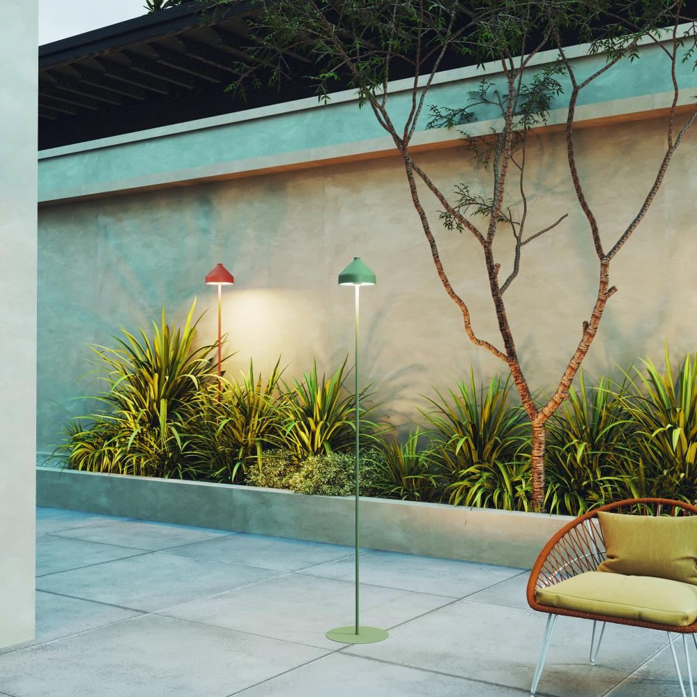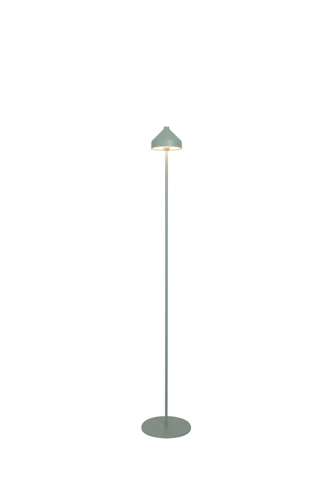 Amelie is portable, rechargeable battery-operated floor lamp, designed by Sara Moroni. The floor lamp is supplied with a silicone hook and a cap, so that they can be transformed into a suspension lamp for direct ambient illumination. Touch control on/off, dimming, and color temperature selection 3 color temperature settings: 2200K / 2700K / 3000K. Suitable for indoor or outdoor use. IP65 Includes contact charging base, charging plug not included253 - 300 - 308 lumens, LED/CRI>80/100-240V/3WLight lasts approx. 10 hours; charging time approx. 6 hours. Salt spray resistance 200 hours.