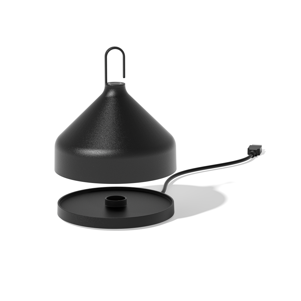Amelie is portable, rechargeable battery-operated wall lamp, designed by Sara Moroni. The wall lamp is supplied with a silicone hook and a cap, so that they can be transformed into a suspension lamp for direct ambient illumination. Touch control on/off, dimming, and color temperature selection 3 color temperature settings: 2200K / 2700K / 3000K. Suitable for indoor or outdoor use. IP65 Includes contact charging base, charging plug not included 253 - 300 - 308 lumens, LED/CRI>80/100-240V/3WLight lasts approx. 10 hours; charging time approx. 6hours.Salt spray resistance 200 hours.