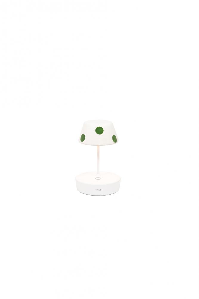Lampshades fit over the metal top of the lamp using special magnets (included)