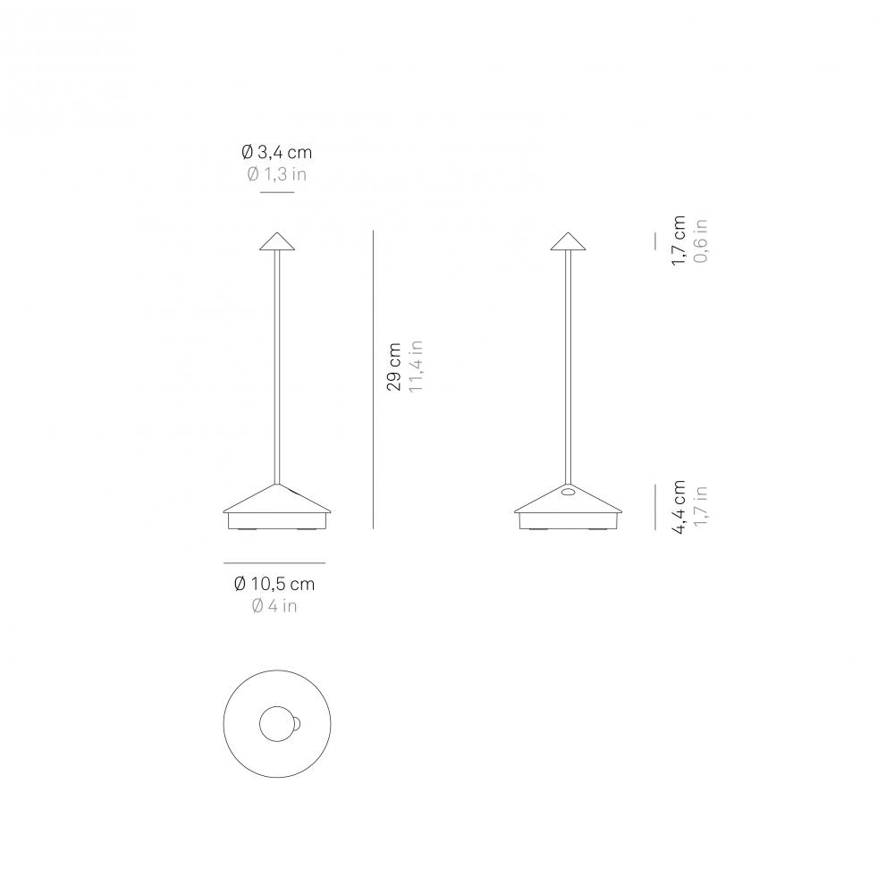 Pina Pro Battery-operated and rechargeable portable table lamp. The lamp features dimming touch control and has 2700K color temperature.