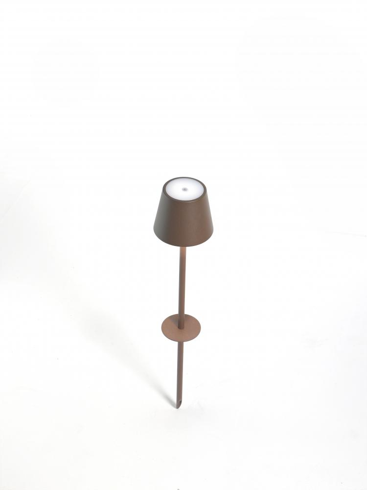 Battery-operated and rechargeable portable peg lamp. The lamp features dimming touch control and has 3-CCT color temperature selection for 2200K (candle light), 2700K (warm white), and 3000K (cool white). The integrated LED module is designed and engineered to produce controlled downlight and a gentle uplight glow. The head of the lamp is cleverly attached by a magnet.