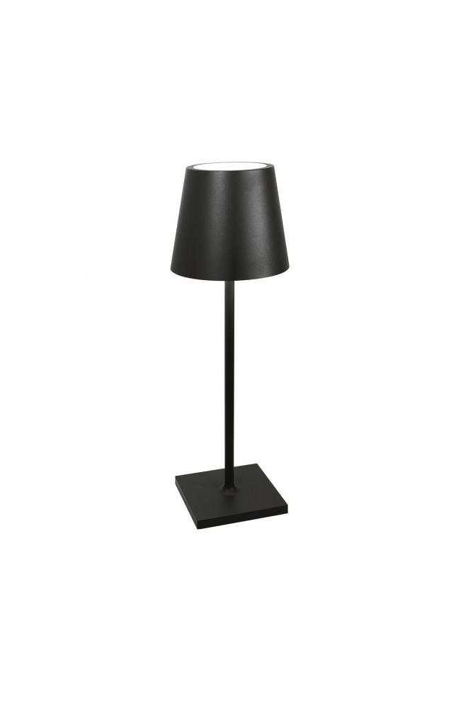 Battery-operated and rechargeable portable table lamp. The lamp features dimming touch control and has 3-CCT color temperature selection for 2200K (candlelight), 2700K (warm white), and 3000K (cool white). The integrated LED module is designed and engineered to produce controlled downlight and a gentle uplight glow. Poldina L Desk lamp is a larger and more powerful version of the classic Poldina Pro Table Lamp.