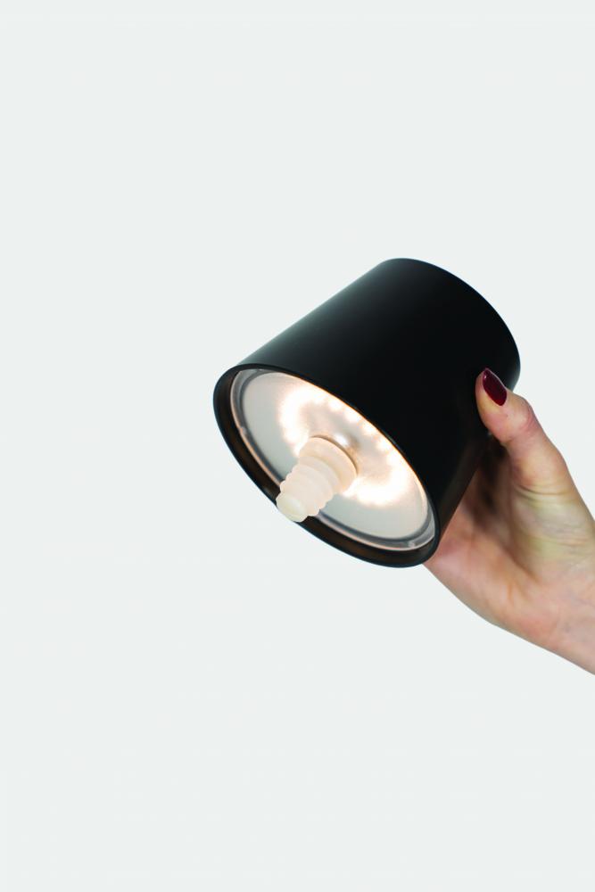 The silicone cap (suitable for food contact) fits different bottlenecks and can be easily removed, allowing the lamp to be conveniently recharged on its contact