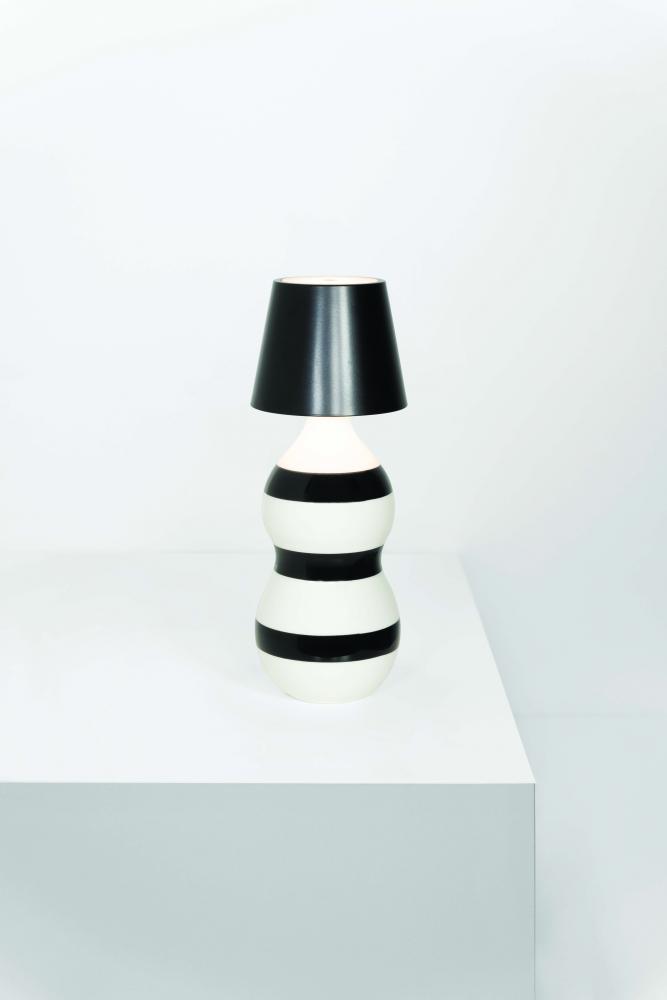 Rechargeable battery-operated, cordless lamp.