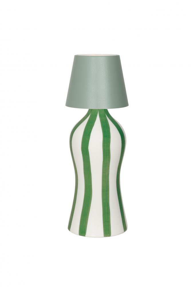 The silicone stopper 'cork' on the bottom of the shade can be inserted into a bottle to create a luminous object.