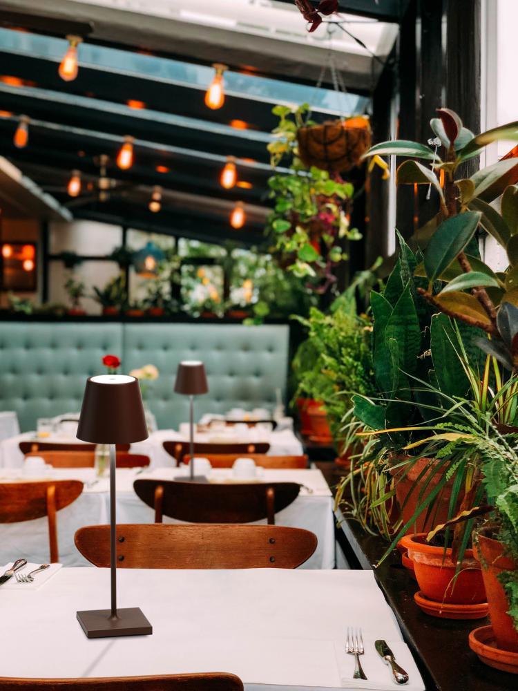 Battery-operated and rechargeable portable table lamp. The lamp features dimming touch control and has3-CCT color temperature selection for 2200K (candlelight), 2700K (warm white), and 3000K (cool white). The integrated LED module is designed and engineered to produce controlled downlight and a gentle uplight glow.
