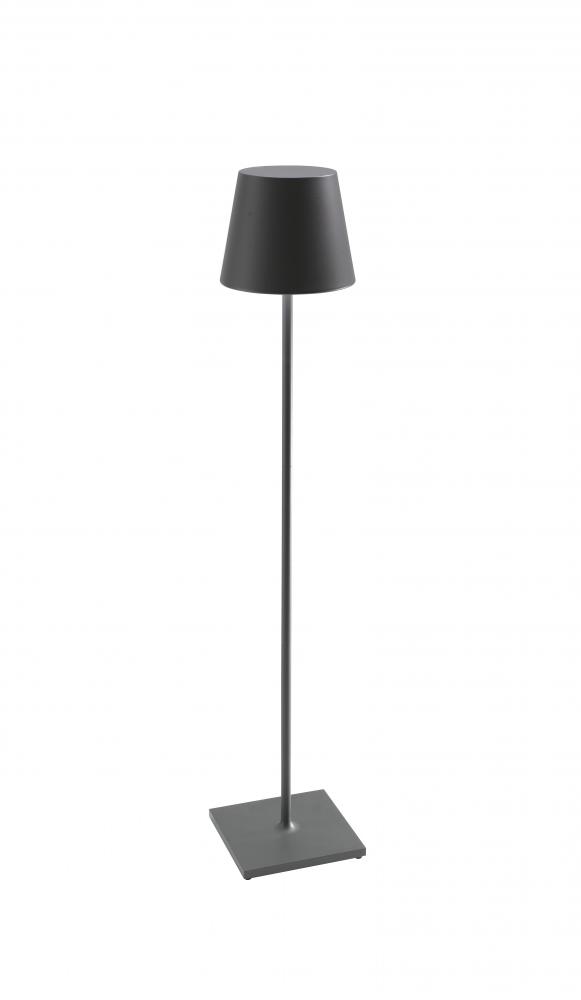 Battery-operated, rechargeable, and height adjustable portable floor and/or table lamp. The lamp features dimming touch control and has 2-CCT color temperature selection for 2700K (warm white) or 3000K (cool white). The integrated LED module is designed and engineered to produce controlled downlight and a gentle uplight glow. The center column consists of 3 stems to allow the height to be adjusted from a minimum 27.3 inches to 59 inches. The integrated LED module produces controlled down light.