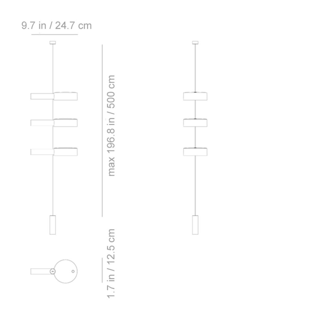 Super O is a portable, rechargeable battery-operated 3 light suspended floor lamp designed by Studio KairosThe lighting module is attached to the suspension cable counter balance connector by magnets allowing the light head to rotate 360 for versatile and dynamic adjustmentsThe module can be moved along the length of the suspension cableTouch control on/off, 4 step dimming, and color temperature selection3 color temperature settings: 2700K / 3150K / 4000KSuitable for indoor or outdoor use. IP65. Salt spray resistance 1000 hoursIncludes contact charging base, charging plug NOT includedEach module- 287-331-336 lumens, LED/CRI>90/100-240V/3.5WLight lasts 10 to 160 hours, depending on brightness setting; charging time approx. 5hours.Painted die-cast aluminum bodyPrismatic polycarbonate diffuserFeaturing an electronic control system thatmonitors the remaining battery life andensures a constant luminous flux until thebattery runs out; recharging is thereforeoptimized and always properly done.