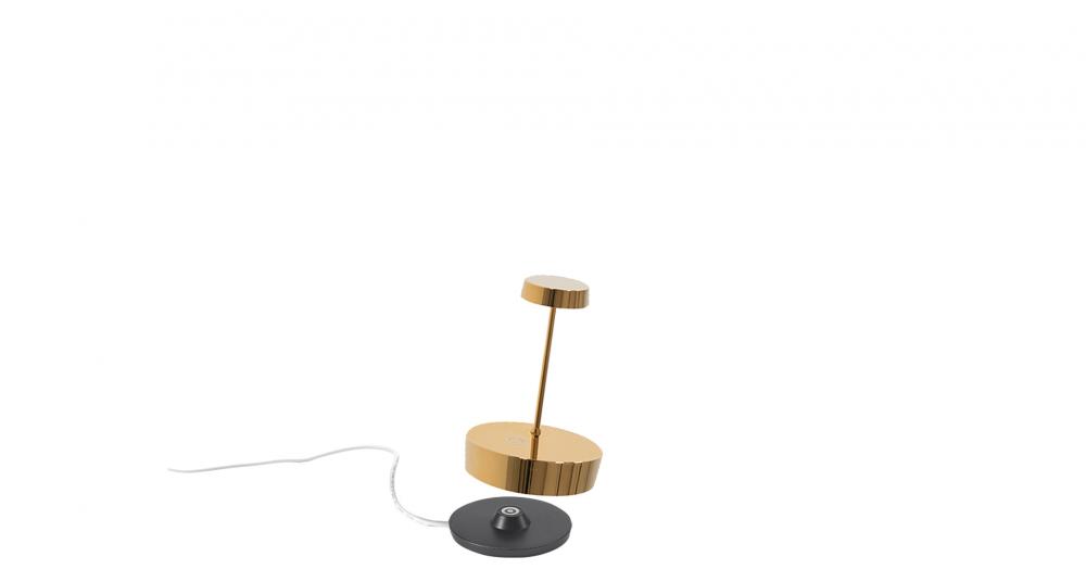 Swap mini is a rechargeable battery- powered cordless table lamp. A "touch" control on the base allows switching on/off and dimming. It is suitable for both indoor and outdoor use (except gold and silver finishes). An electronic control system monitors the remaining autonomy and ensures a constant luminous flux until the battery runs out. Recharging is therefore optimized and always properly done. The lamp comes with a contact charging base; the battery charger is not included. Swap mini can be customized choosing from a range of ceramic lampshades, to be purchased separately.
